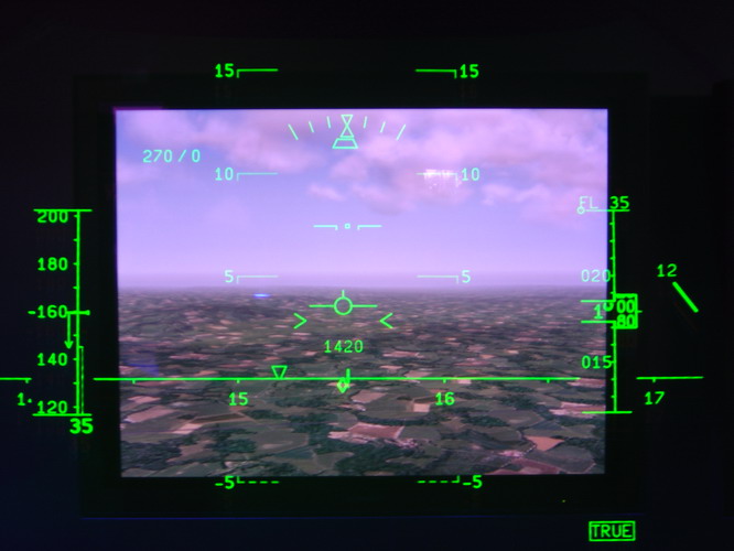 Voici ci-dessus le HUD du futur avion de transport militaire A400M tel qu’il était présenté au salon du Bourget au mois de juin 2005.