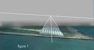 La raison est d’une simplicité désarmante : la trace au sol du plan passant par l’axe de la piste est une ligne qui converge vers le » point de fuite » à l’horizon (fig. 1), tandis que la trace au sol du plan vertical contenant l’observateur dans l’avion est une verticale issue du même point de fuite (terre supposée plate et horizontale à l’échelle d’une approche).